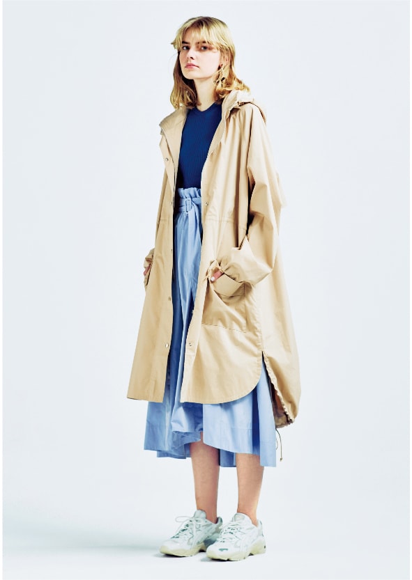 雨の日にも嬉しい撥水加工が施されたトレンチコート。 ボタンレスでナチュラルストレッチ素材を使用しているから着心地も軽やかです。 定番アイテムこそ機能性で差をつけて。