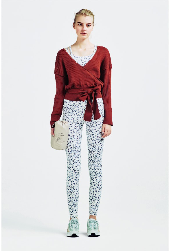 スポーツライフスタイルウェアを提案するDANSKINとのコラボアイテム。運動時の揺れを抑え胸の形をキープするブラと骨盤安定機能が付いたレギンスに、emmiで人気のフラワープリントを施しました。