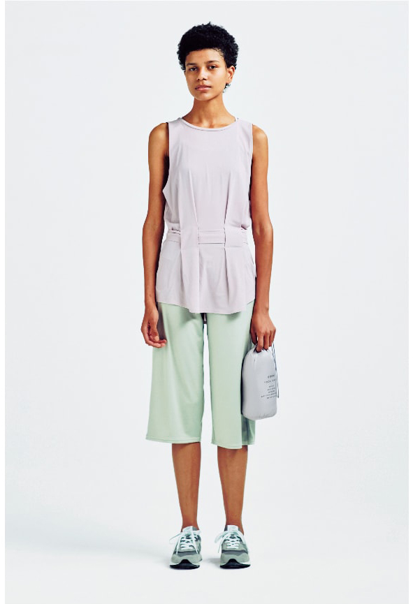 優し気なラベンダーカラーのタンクは、トレーニングやヨガだけでなくデイリーにも取り入れられるモードなデザイン。