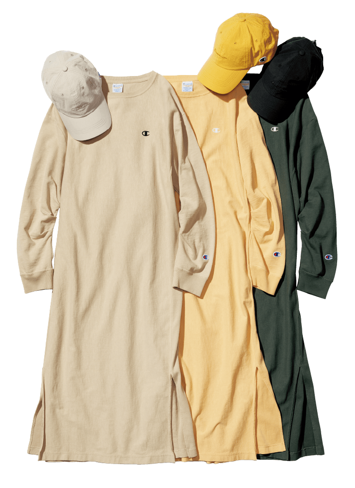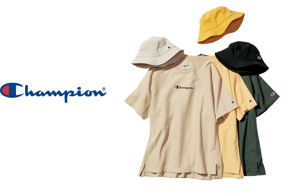 Champion×emmiの第二弾。全4型をニュアンスのある3色で展開。さり気ないロゴマークが程よいストリート感を演出します。帽子とTシャツの色味を合わせたワントーンスタイルもおすすめです。