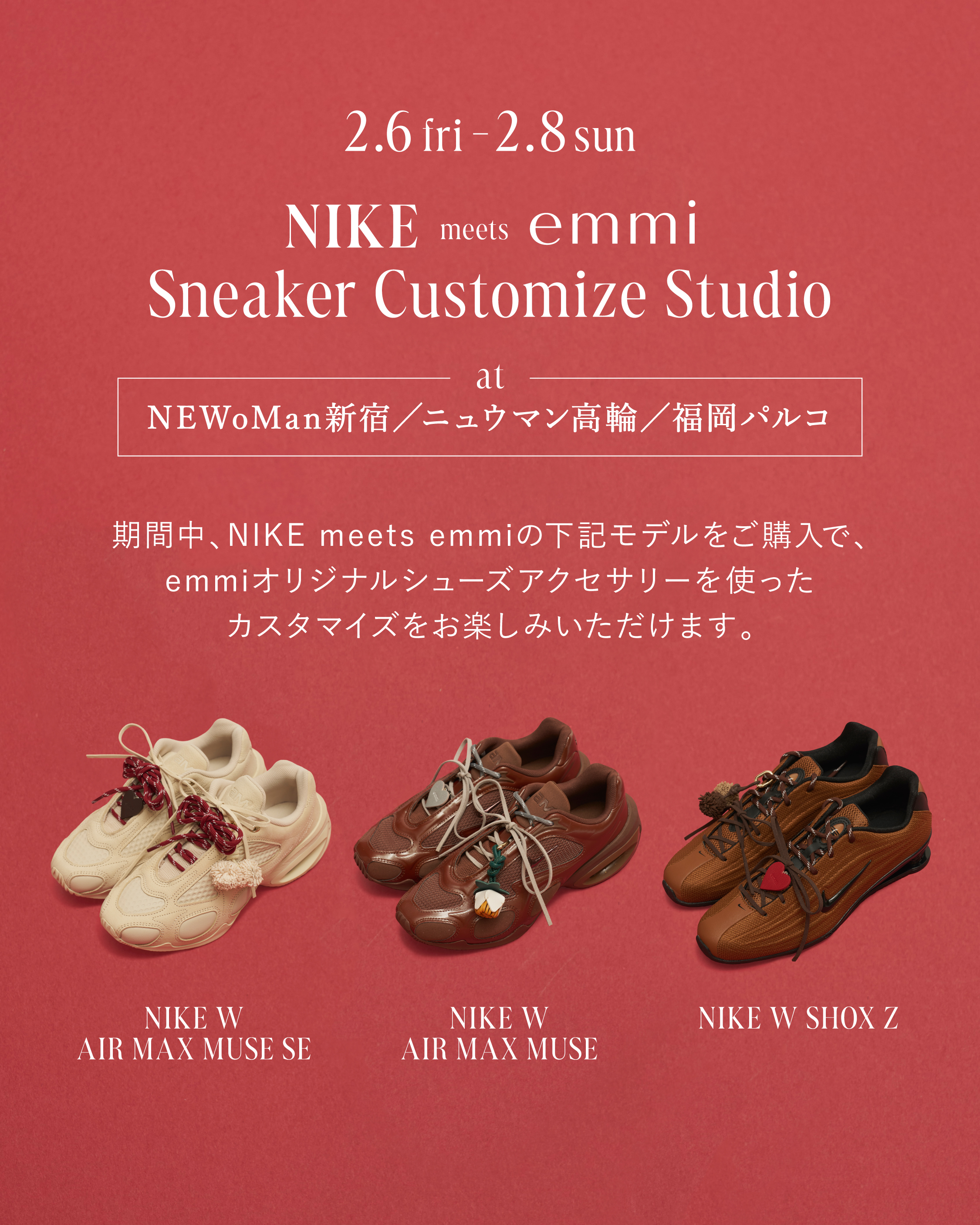 NIKE meets emmiエクスクルーシブモデル発売を記念して、 カスタムイベント「Sneaker Customize Studio」を開催いたします。