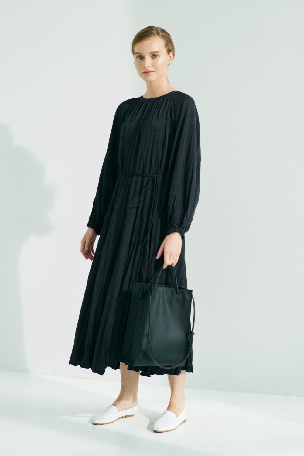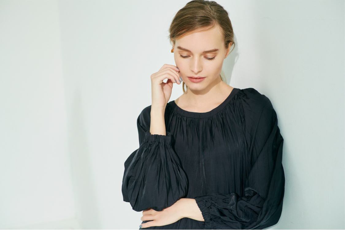 繊細なシャーリングや、ゆとりのあるボリューム袖など秋冬のトレンドが程よく入ったワンピース。前後2wayで着られるほか、付属の細リボンでウエストマークすれば、きちんとしたシーンに対応可能。着用シワも気にせず着られます。
