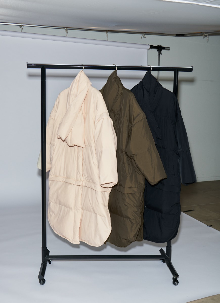 3回目になるダウンコートのコラボ。当初からこだわっているサスティナブル素材、保温性、軽さ、マットな表面感はそのままに、よりそぎ落とされたデザインでこれ以上考えつかないくらいに着回せる機能性にこだわって作りました。ベーシックながら印象が変わる色展開も気に入っています。