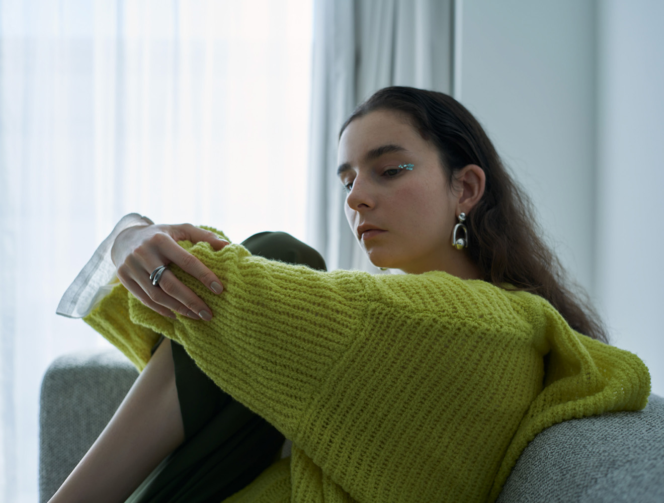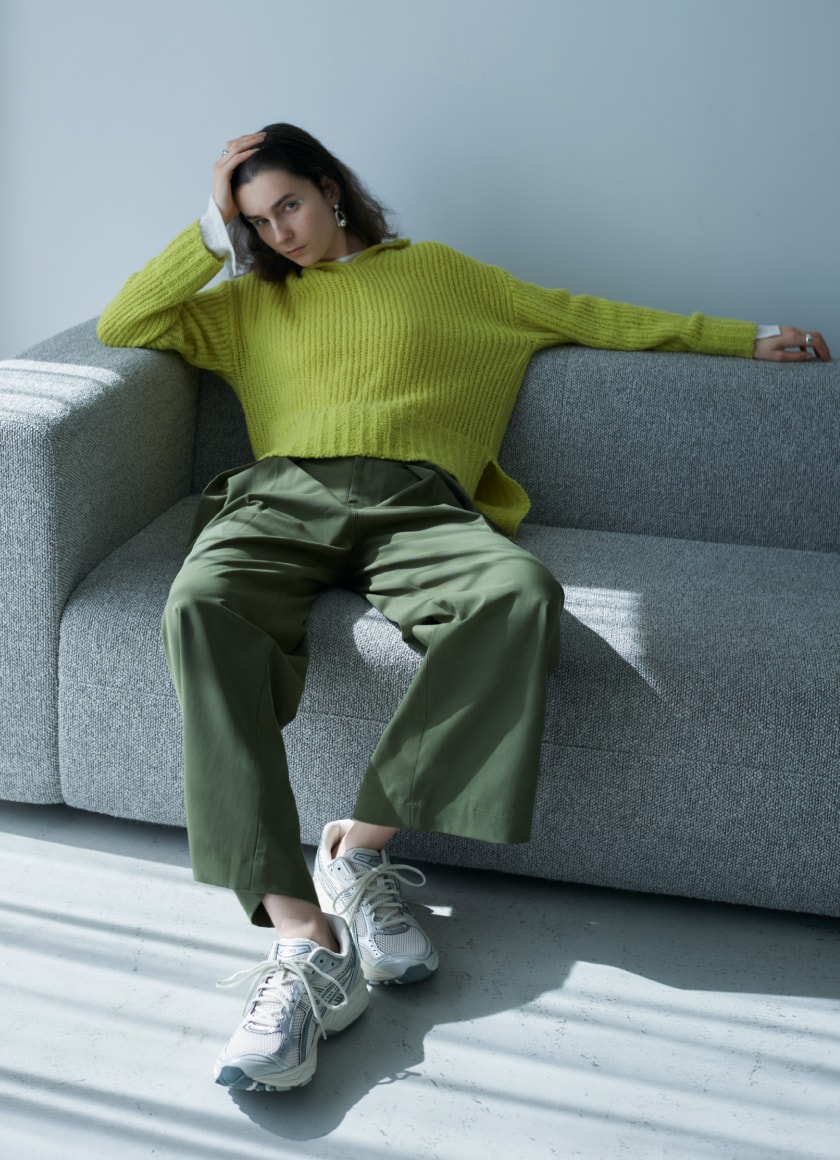 ざっくりとした編地が軽やかなフーディニットは、一枚で程よい抜け感を演出。 パンツとトーンを合わせたスニーカーはボリューム感のあるシルエットとタウンユース用にアップデートされた素材感で、程よいスポーティさをプラスしてくれます。