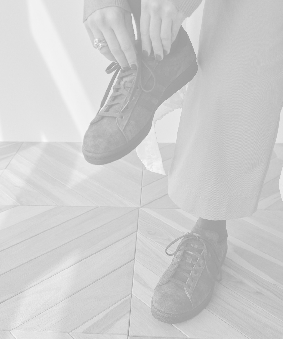 ポイントとなるスリーストライプスは同色のマットレザー調にし、