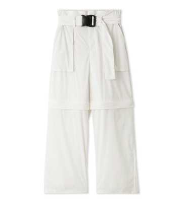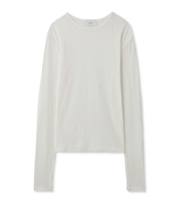 少しカジュアルな組み合わせは、洗練された印象になるよう色選びがポイント。インナーとボトムはホワイトカラーがベース。それぞれにシースルーの要素を取り入れ抜けをつくることで、のっぺりした印象にならずに仕上がります。アウターとサンダルの色味があっているので、全体的に統一感がうまれます。