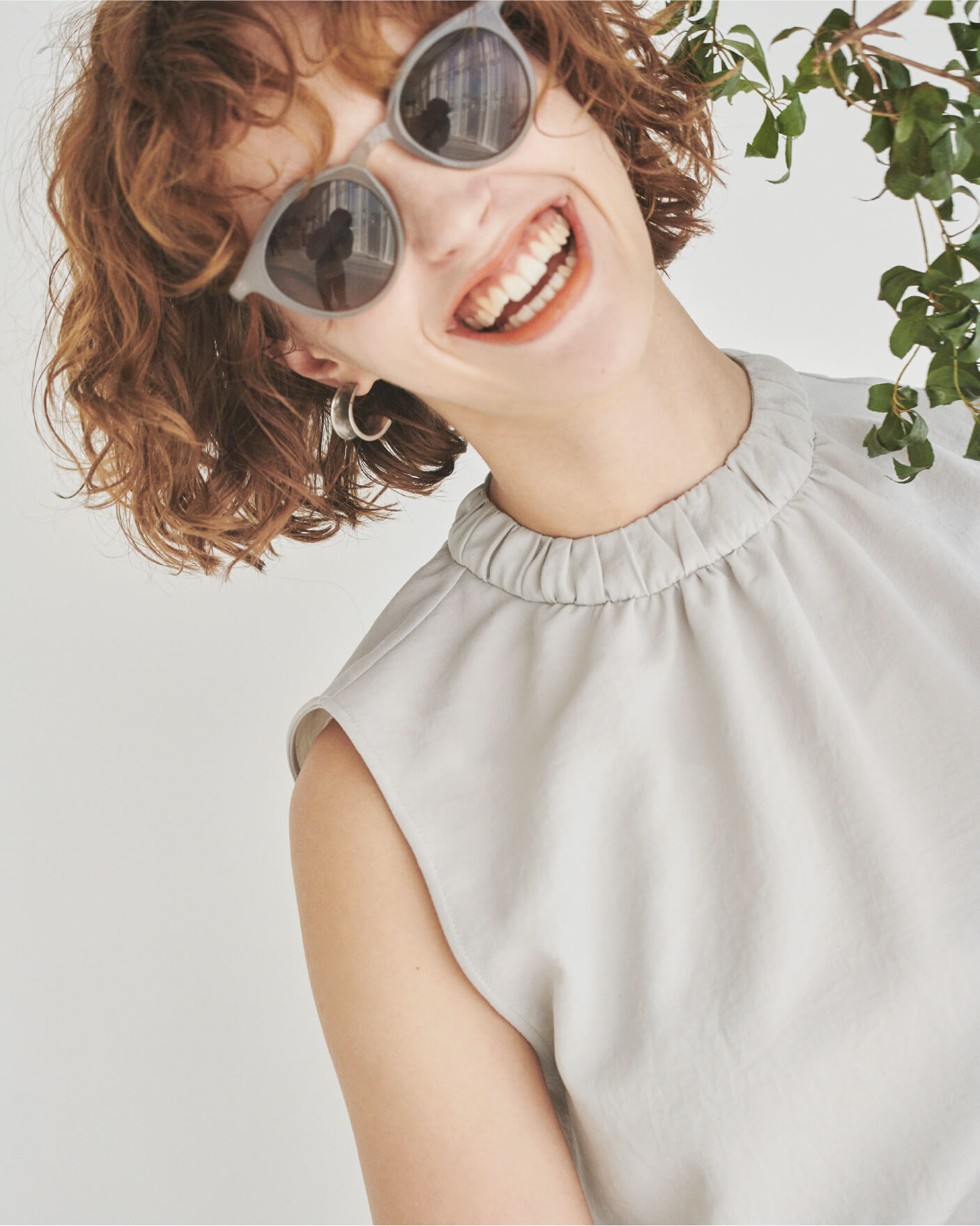 表面に特殊な加工を施し、ヴィンテージ風のふくらみのある独特のタッチが魅力のワッシャー加工を再現したトップス。首元はギャザーを寄せたデザインにすることで、シンプルながら表情ある一枚に仕上げました。自宅での洗濯が可能。シワ防止加工を施しているから、洗ったらそのまま干して、そのまま着ることができます。