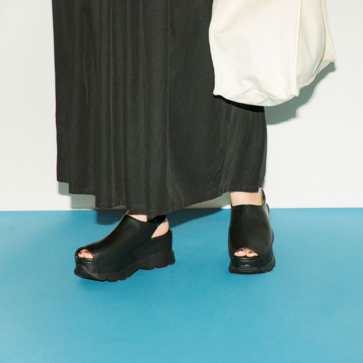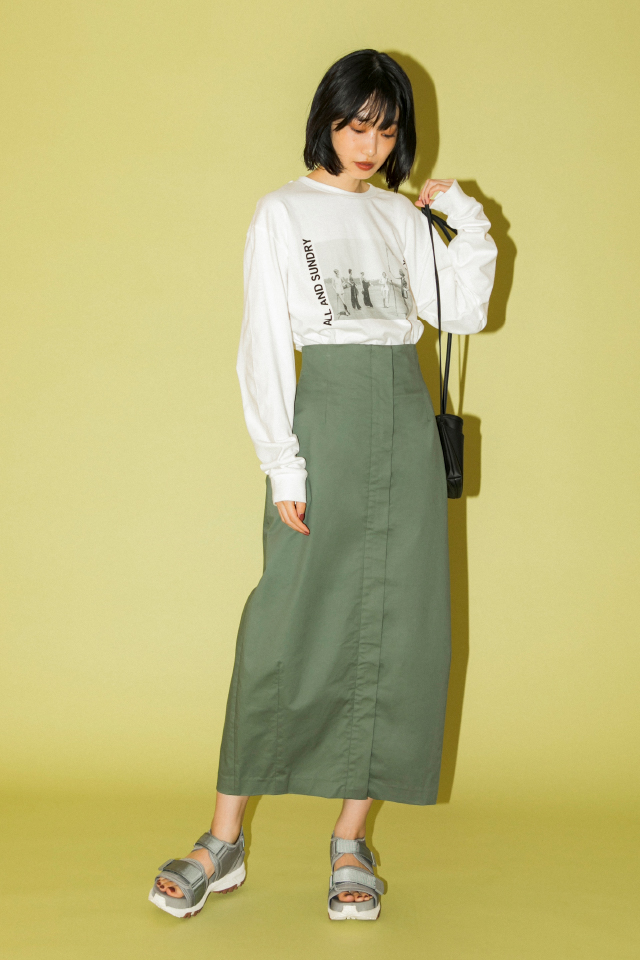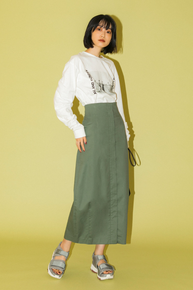 Tops 7,200yen+tax , Skirt 17,000yen+tax Sandals 16,000yen+tax(SNIDEL×emmi)